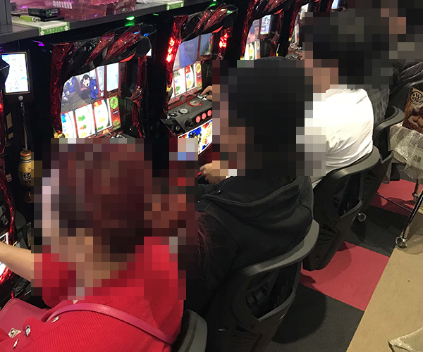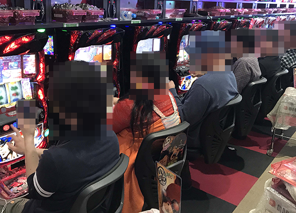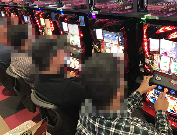 設置されている14台がフル稼働であったことにくわえ、ひとりひとりが遊技を満喫している様子の「押忍!番長3」だ。
