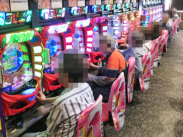 取材時の店内には既に多くのプレイヤーが集結し、パチンコ・パチスロを問わずにぎやかな状況となっていた。