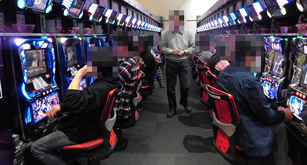 14時を過ぎた頃のパチスロにおいて、とくに盛り上がっていたのは「バジリスク~甲賀忍法帖~絆」と「パチスロ北斗の拳 修羅の国篇」。目をひくようなパフォーマンスを披露しているプレイヤーが多く、ひときわ活気づいていた。