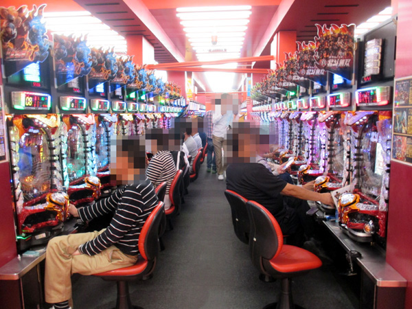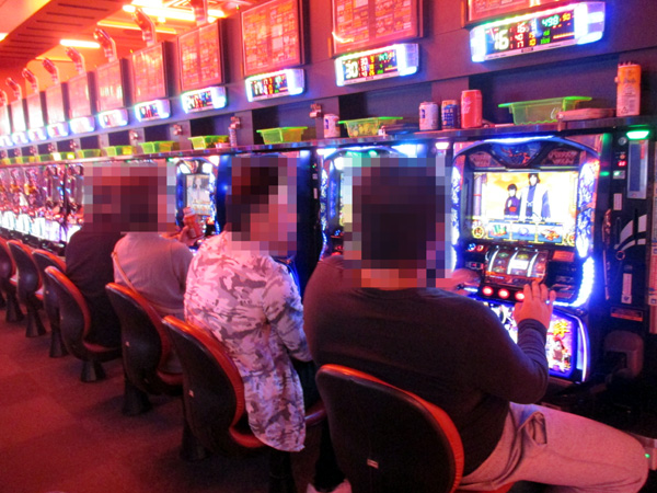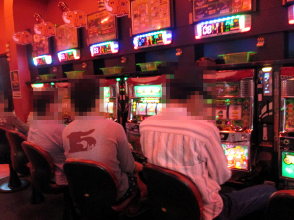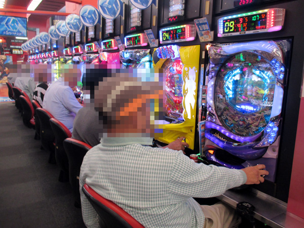 1円パチンコでは海物語シリーズが人気の中心。楽しそうに遊技するプレイヤーが多く、シマ全体が明るい雰囲気に包まれていた。