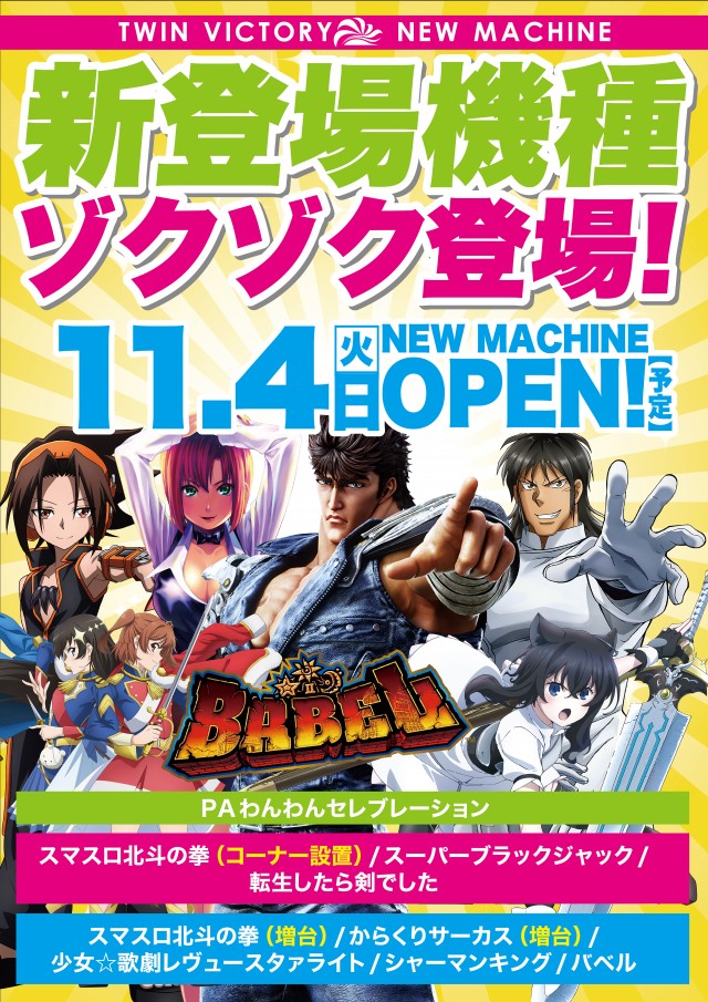 11月4日!低貸しコーナーに新たな機種が登場!!