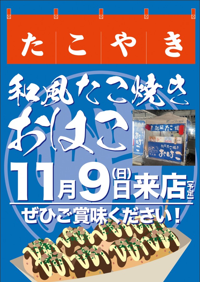 【創業月間】明日たこ焼き屋台”おはこ”来店!全館朝9時開店!