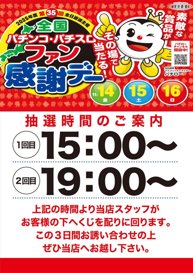 本日より3日間開催!全国パチンコ・パチスロ感謝デー開催♬