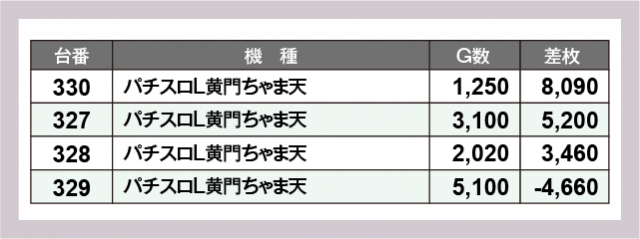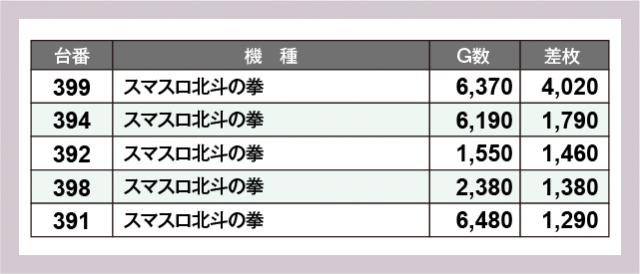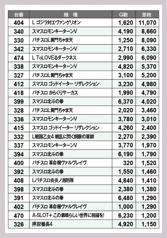 ※差枚数順に掲載しています