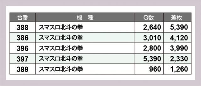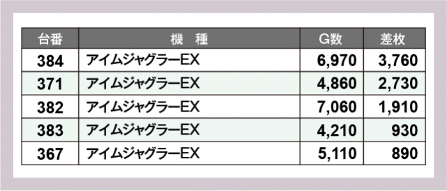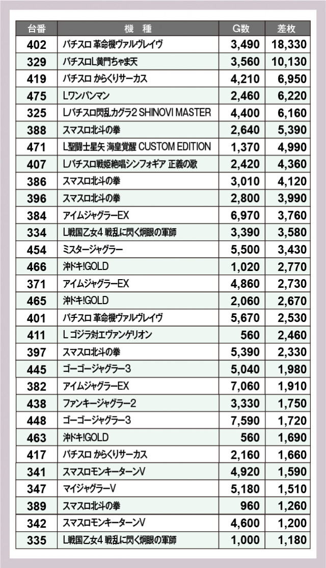 ※差枚数順に掲載しています