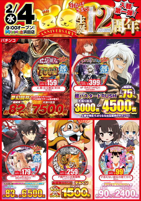 誕生月間!!2月2日!!本日もAM9:00オープンです!!
