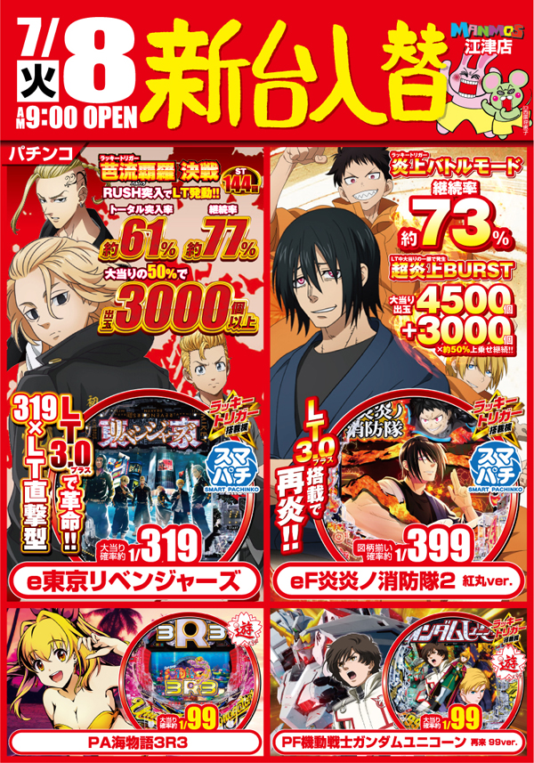 🌟注目スマパチ「東京リベンジャーズ」「炎炎ノ消防隊」導入!🌟