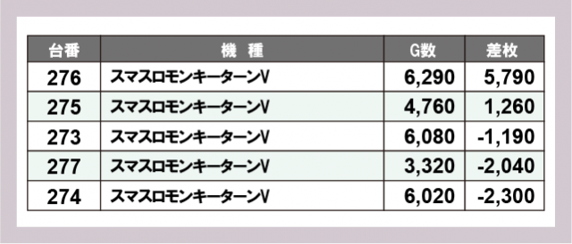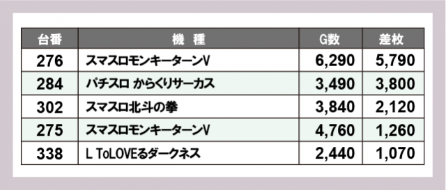 ※差枚数順に掲載しています