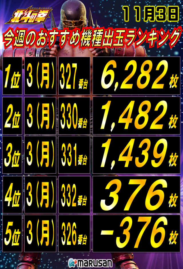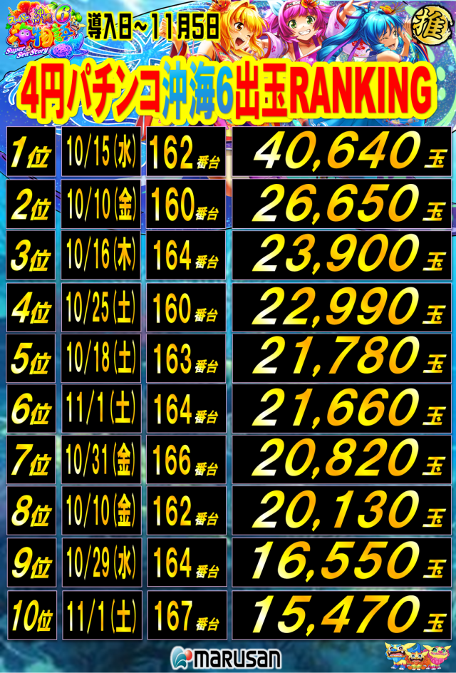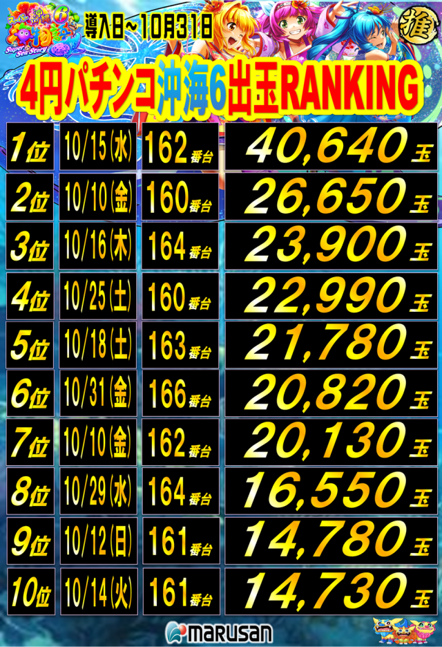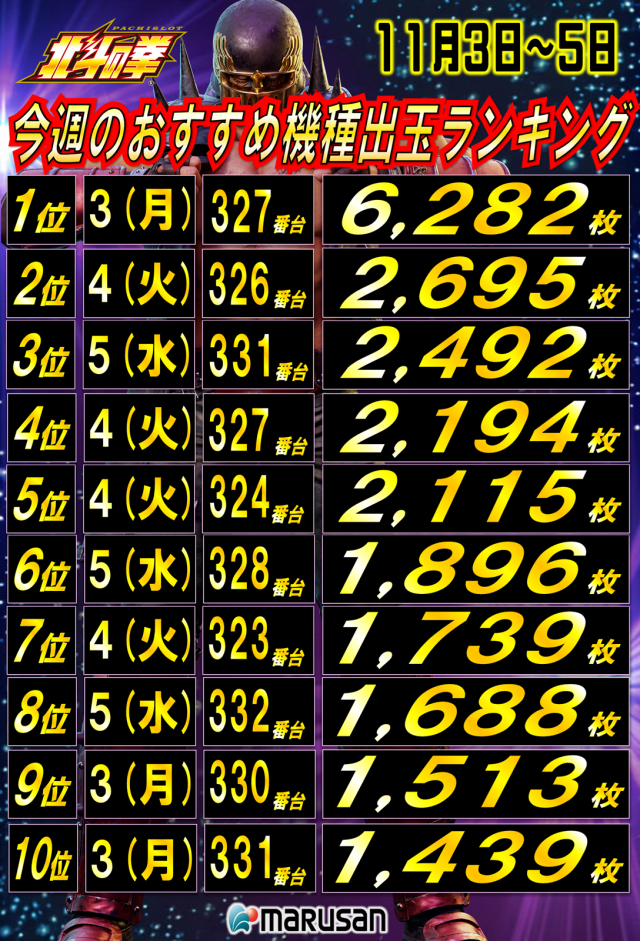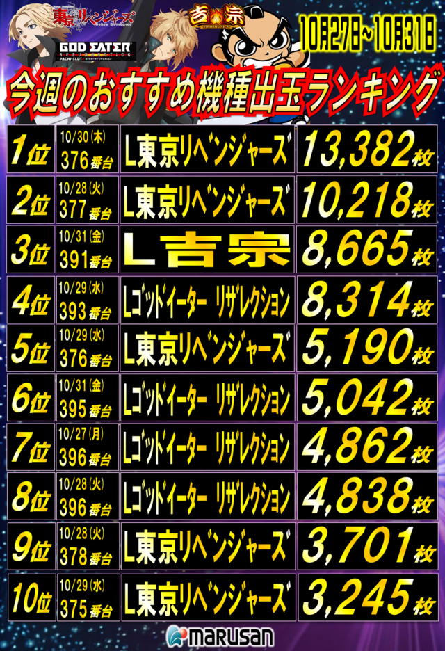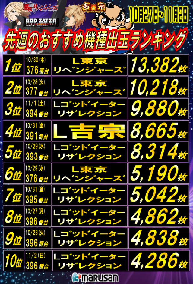 1位 10月25日(土) 2位 10月18日(土) 3位 10月11日(土)