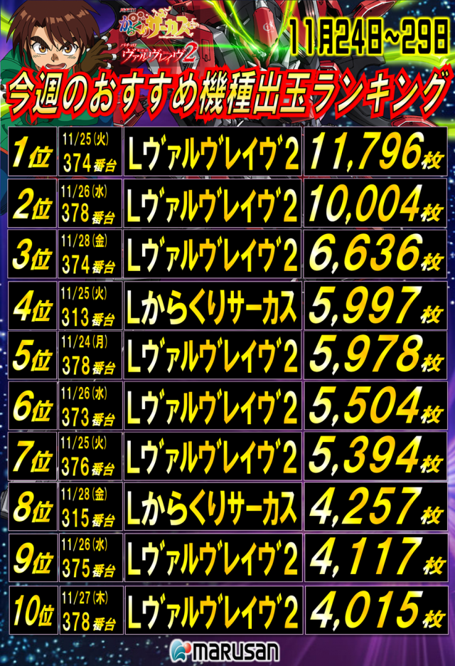 1位 11月29日(土) 2位 11月22日(土) 3位 11月10日(月)