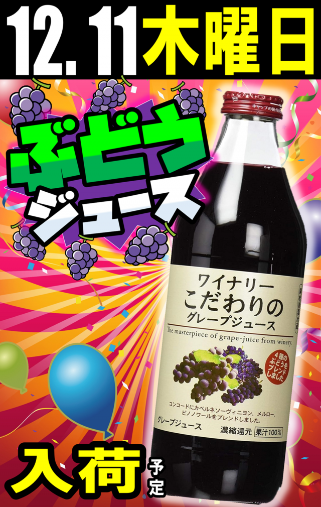 明日、ぶどうジュース入荷‼