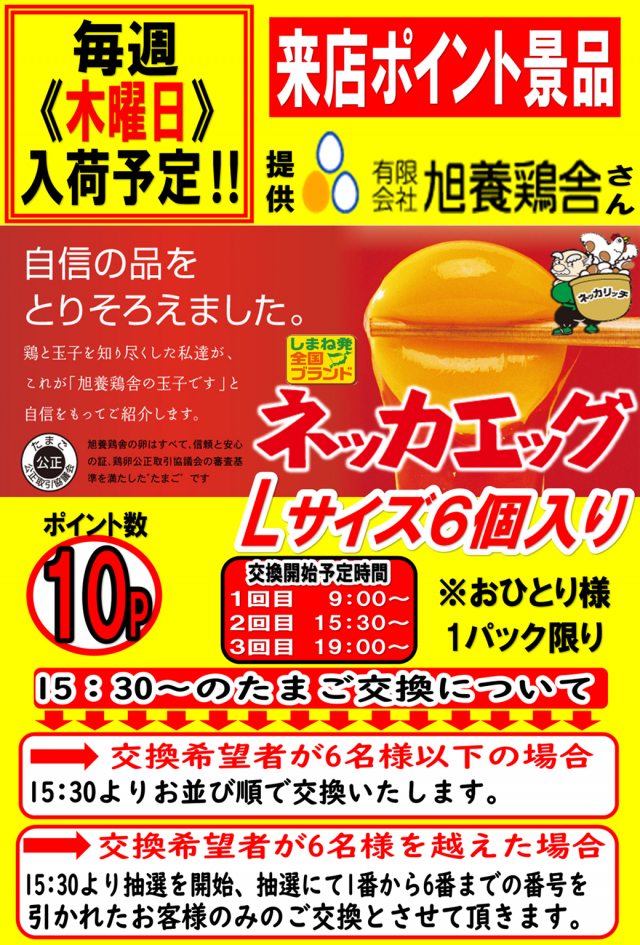 明日、毎週木曜恒例【たまご】入荷‼