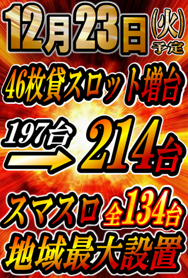 明日、46枚貸スロット増台予定‼