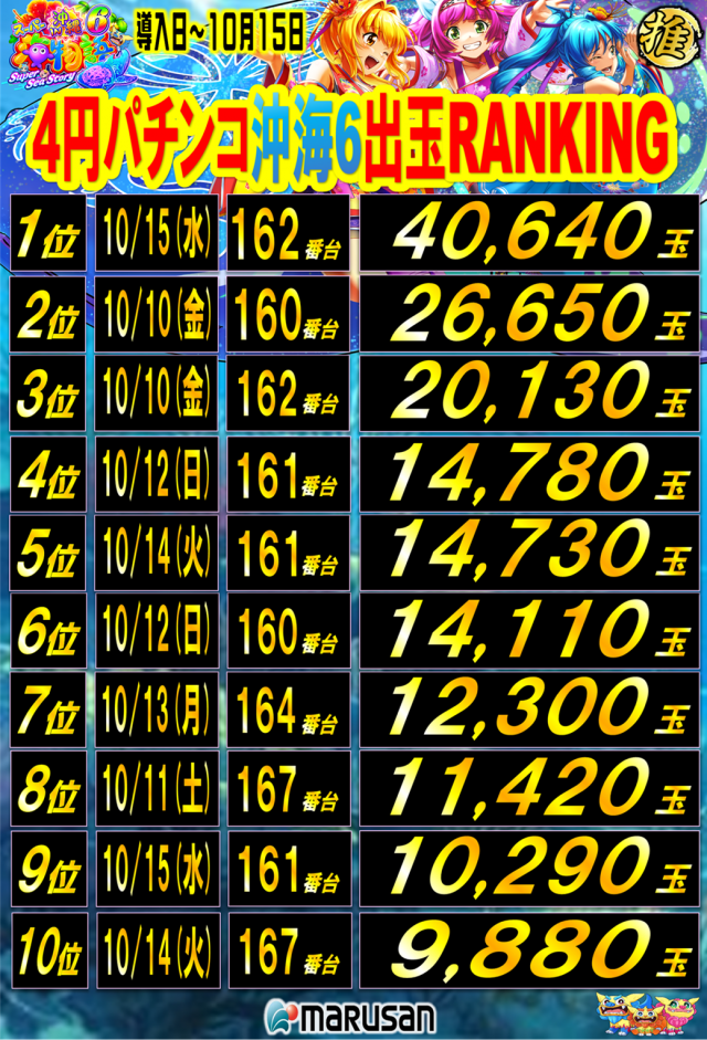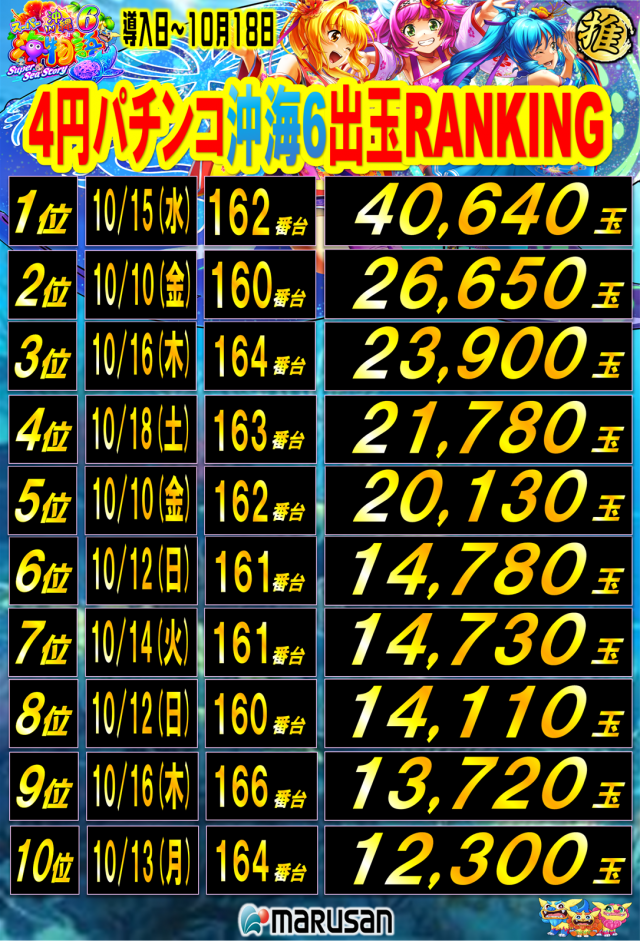 1位 10月25日(土) 2位 10月18日(土) 3位 10月11日(土)