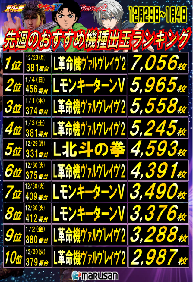 1位 2月4日(水) 2位 1月31日(土) 3位 2月14日(土)