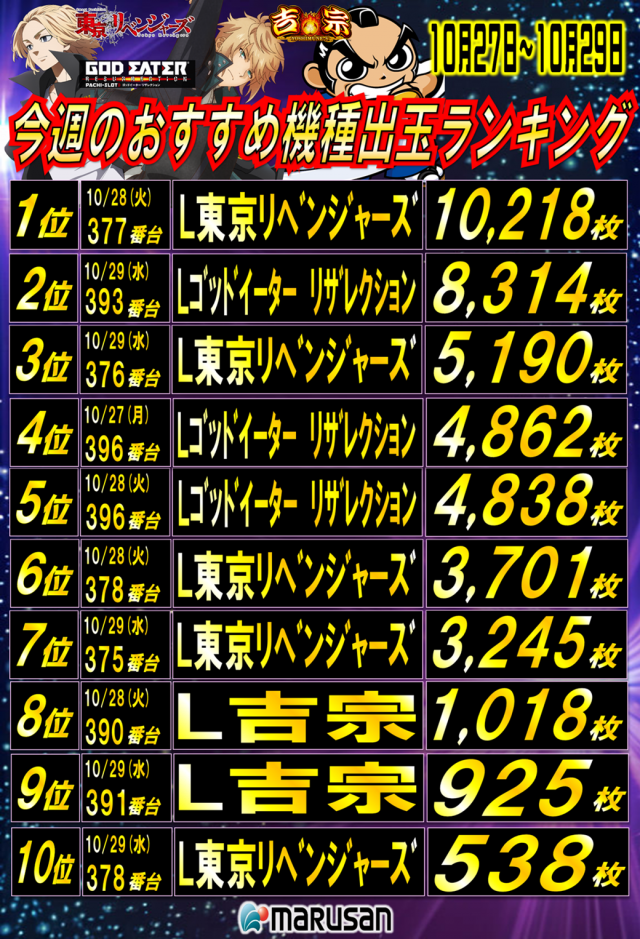 1位 11月29日(土) 2位 12月5日(金) 3位 11月22日(土)