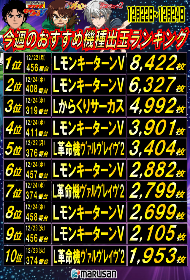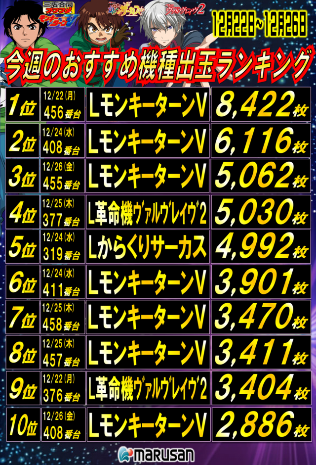 1位 2月4日(水) 2位 1月31日(土) 3位 2月14日(土)