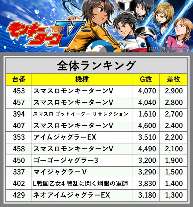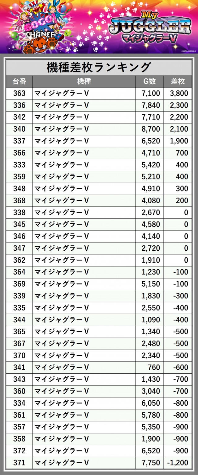 ※差枚数順に掲載しています