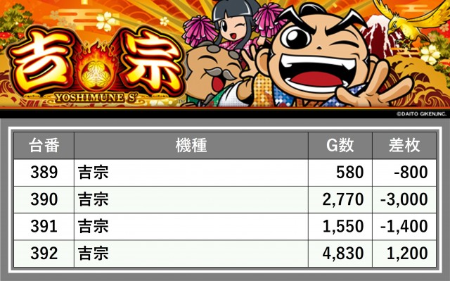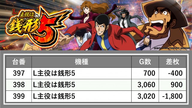 厳選された取材対象機種をはじめ、その他スロット全体から好記録が飛び出した!プレイヤーが楽しんだ1日を下記データにて振り返ってみて欲しい。