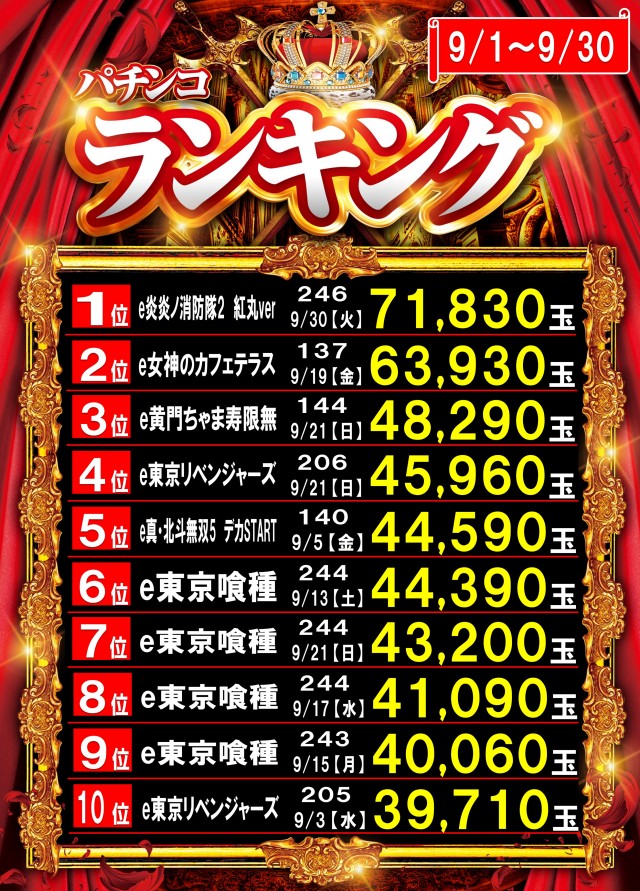 1位 10月11日(土) 2位 10月25日(土) 3位 10月18日(土)