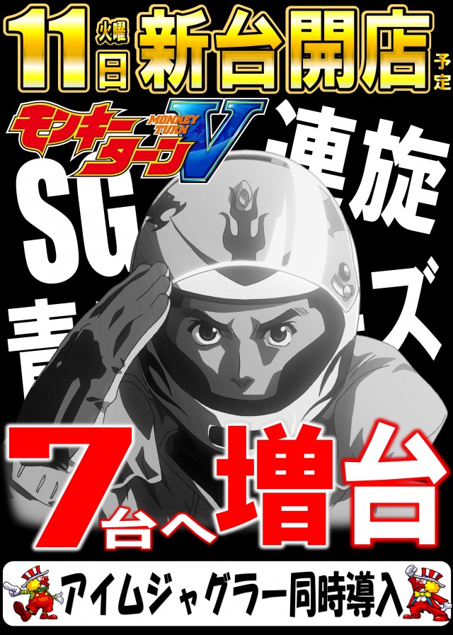 明日は新台開店!!スマスロモンキーターンが増台だ!!