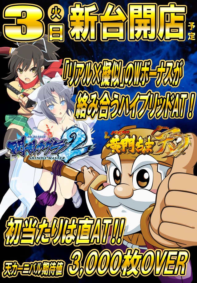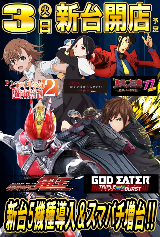 【丸三大田中央店】明日は話題の最新台が続々導入予定‼