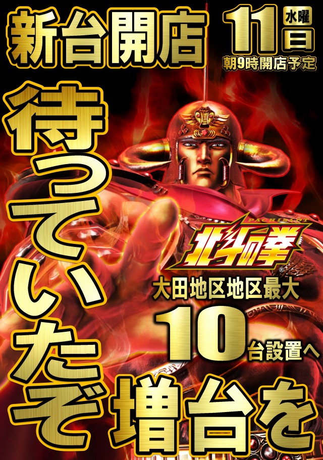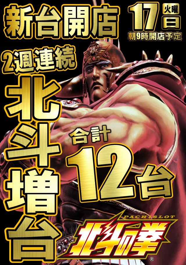 本日新台開店‼スマスロ北斗12台へ増台‼