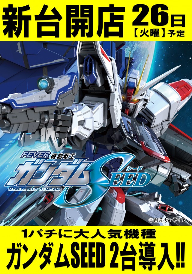 本日は新台開店‼1円パチンコにガンダムSEED2台導入‼