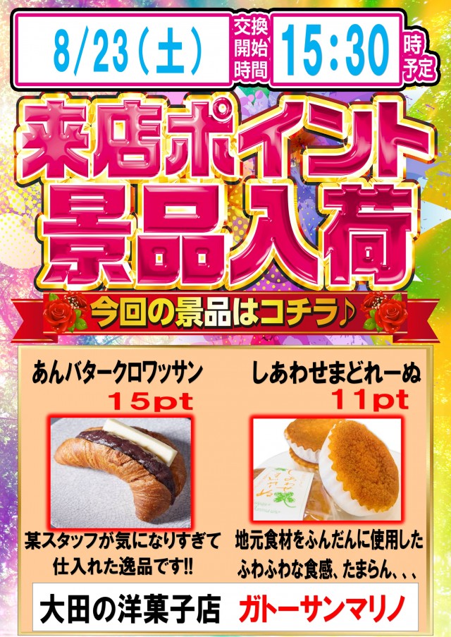 来店ポイント景品でガトーサンマリノ様の洋菓子を入荷!