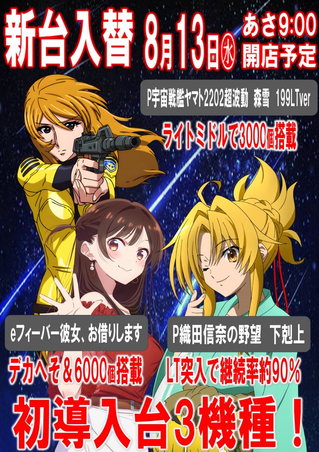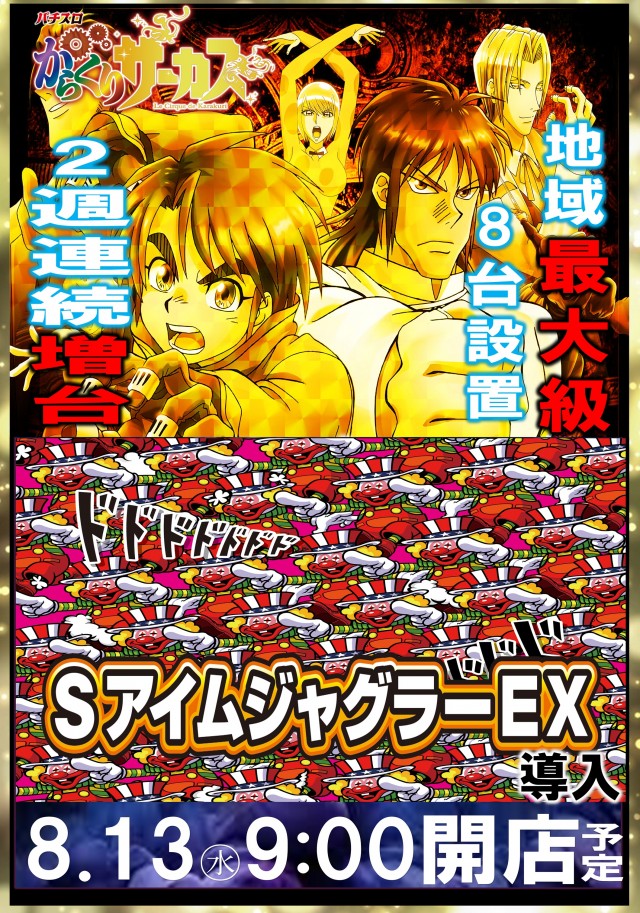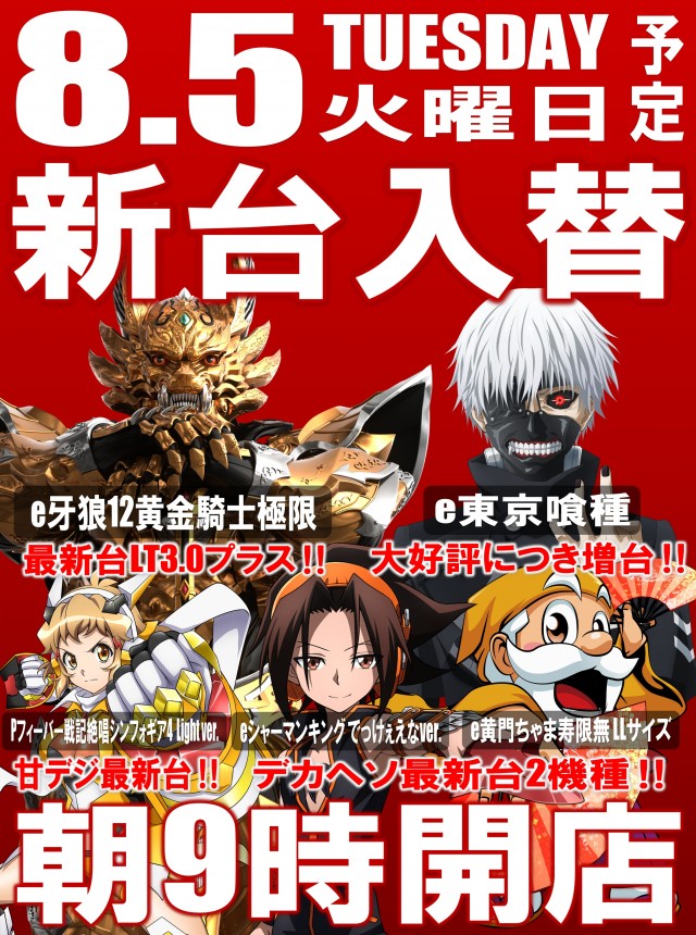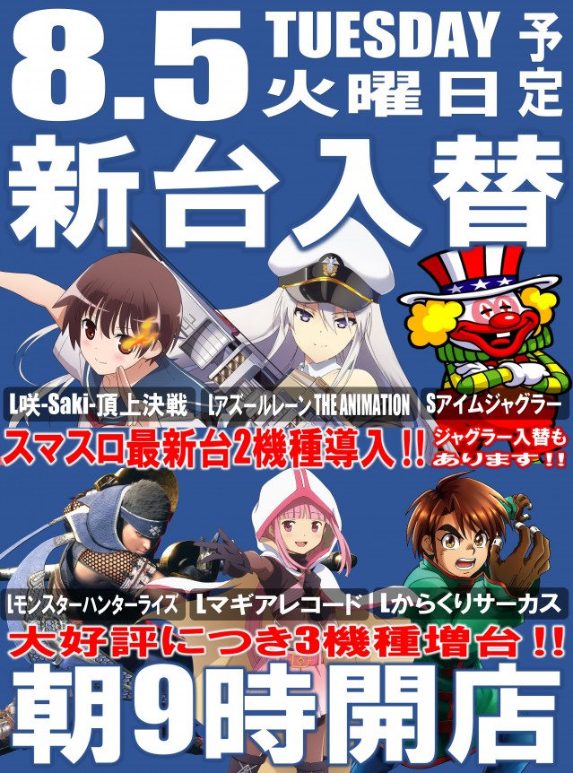 本日は新台開店!マギレコシリーズ最新台&L北斗地域最大設置!