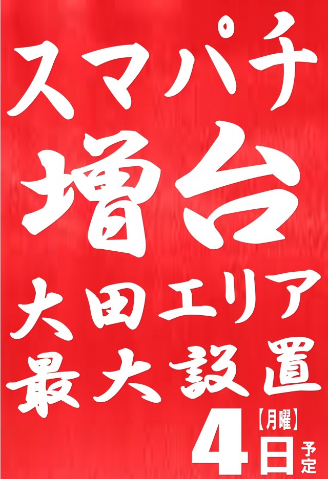 総付け景品配布予定!パチンコ・スロット最大設置♪