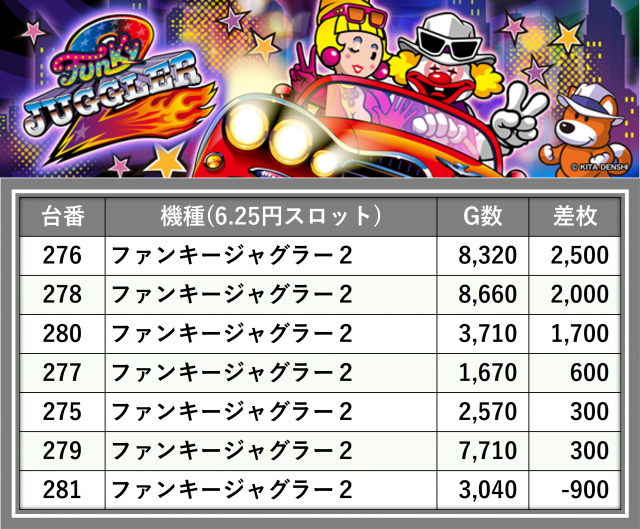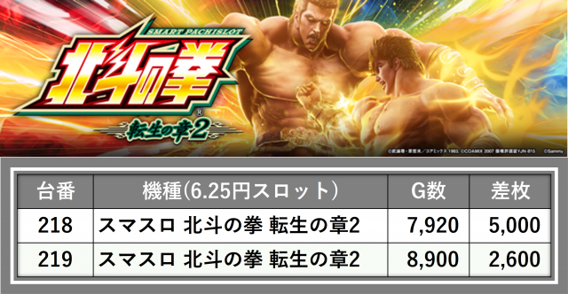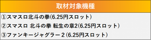 厳選された取材対象機種をはじめ、その他スロット全体から好記録が飛び出した!プレイヤーが楽しんだ1日を下記データにて振り返ってみて欲しい。