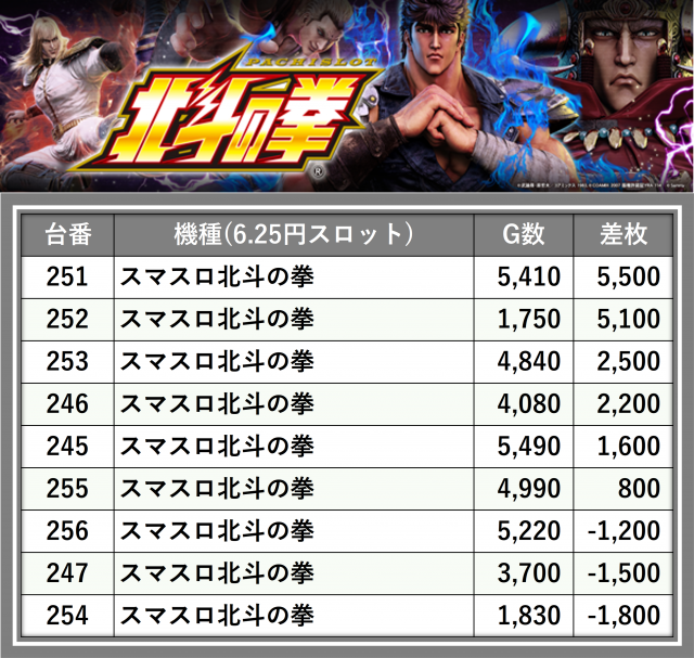 ※差枚数順に掲載しています