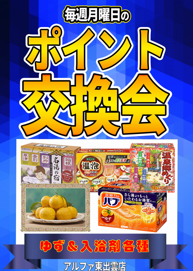 本日22日開催中!【毎週月曜日】は来店ポイント交換会☆