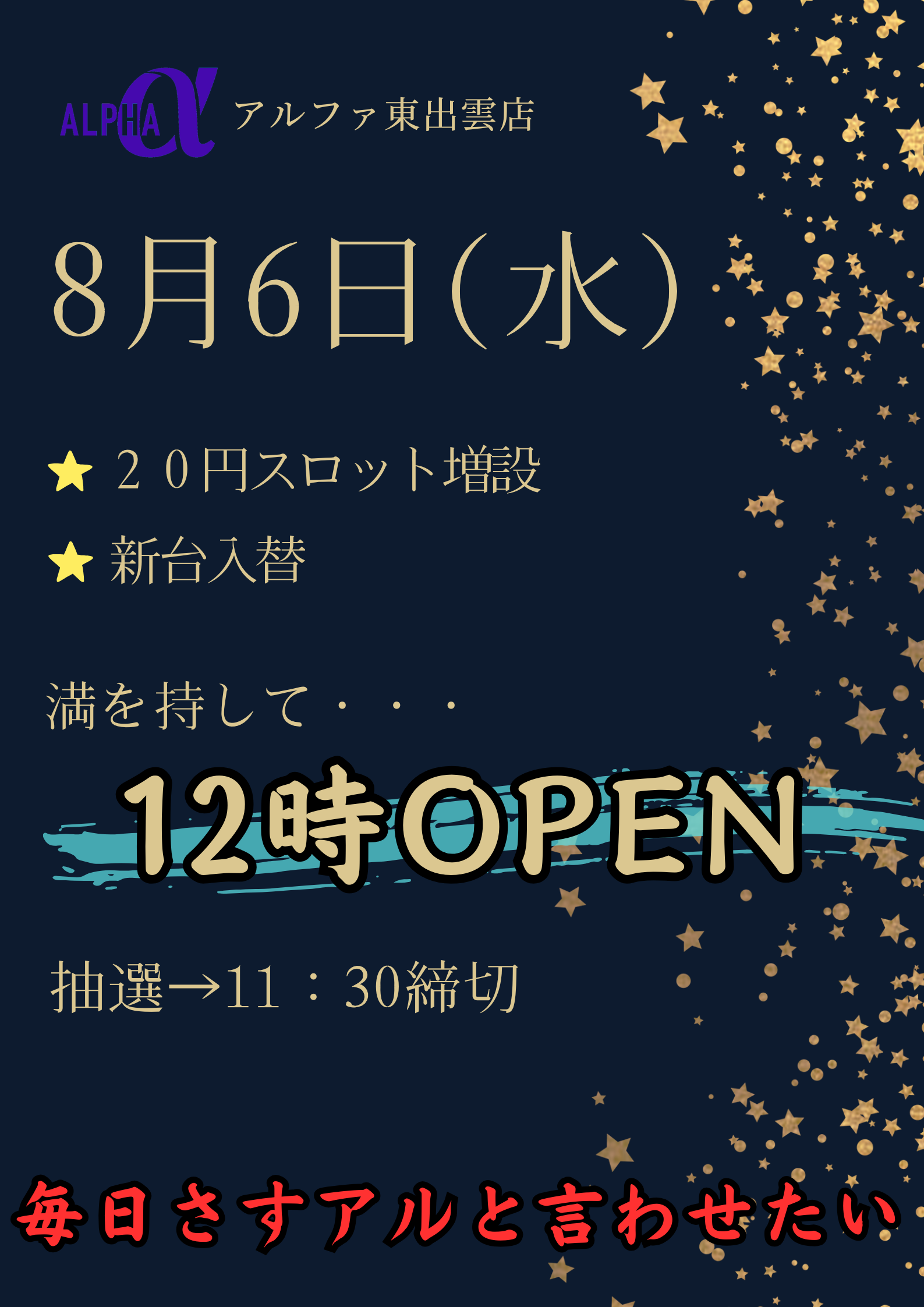 8月6日(水)!12時OPEN!!新台入替!!予定