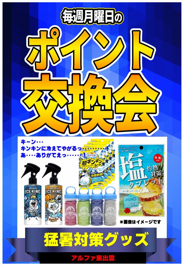明日7月28日毎週月曜恒例《来店ポイント交換会》☆開催☆予定