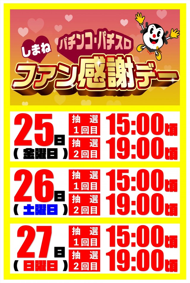 明日7月27日(日)【しまねファン感謝デー】開催!最終日!!