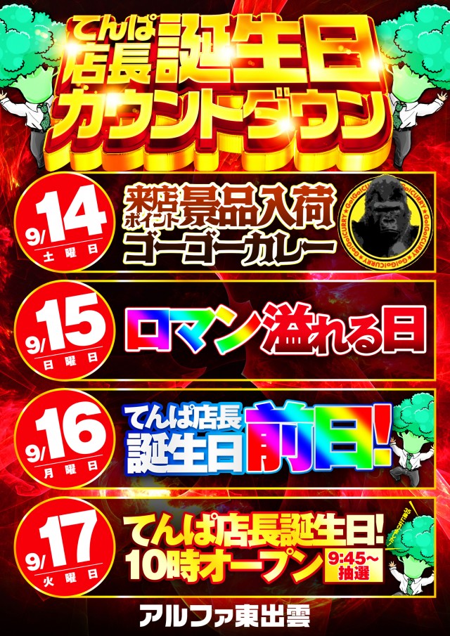 本日最終日!《誕生日カウントダウン》開催中&明日新台入替!!