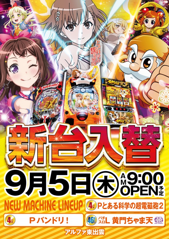 本日10月9日(水)《新台入替》♪♪