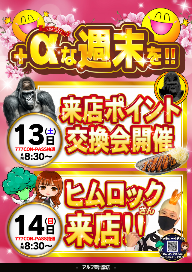 本日13日(土)《来店ポイント交換会》&《プラスαな週末を》