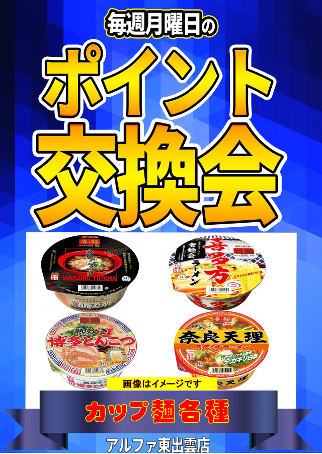 明日15日(月)!毎週月曜日恒例!《来店ポイント交換会》開催