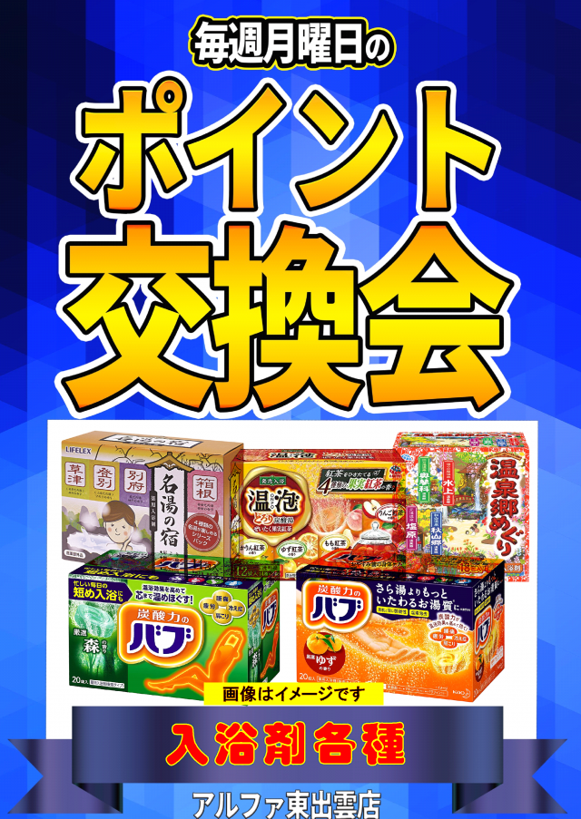 明日5日開催!【毎週月曜日】は来店ポイント交換会♪