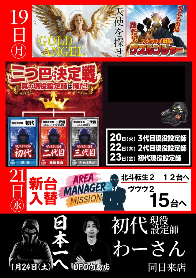 1位 1月11日(日) 2位 1月17日(土) 3位 1月10日(土)
