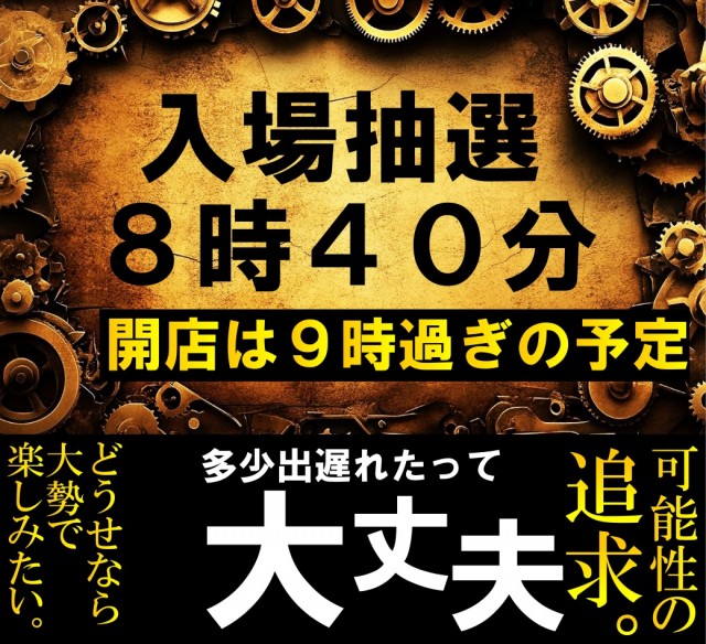 当日8:40に立体駐車場エレベーターホール前にて抽選を行います。8:50より整列開始。 |
