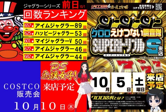 10月5日(土)クロロ店長えげつない調査隊SSS来店