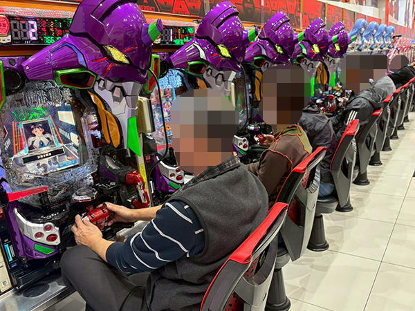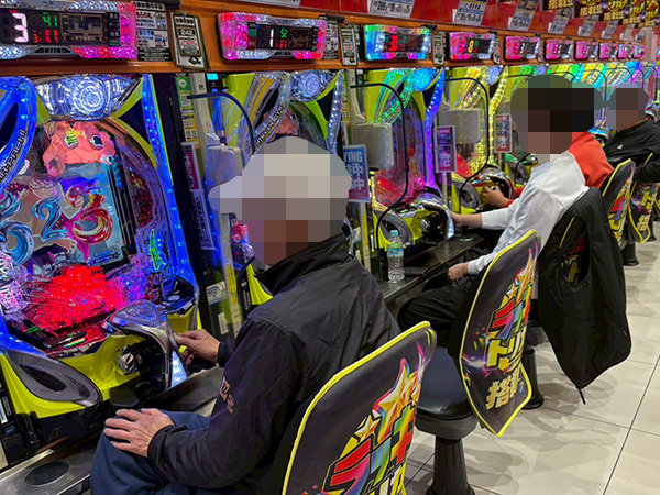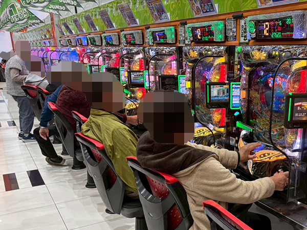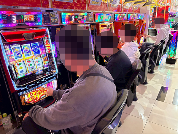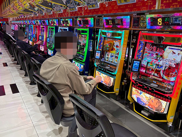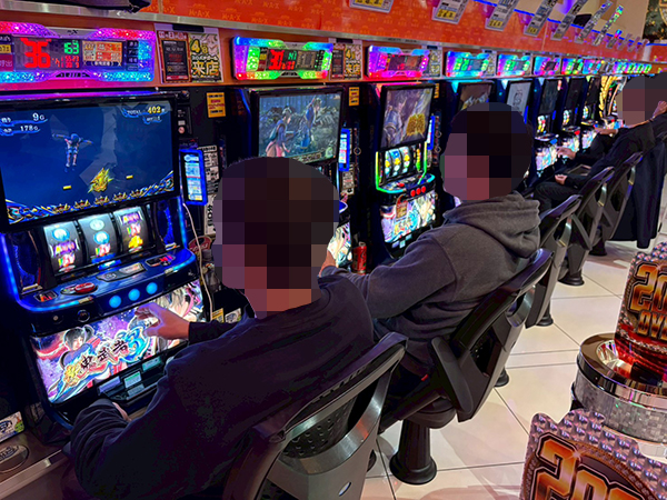 取材時は多くのプレイヤーが来店。パチンコ・パチスロともに、様々な機種が支持を得ていた。