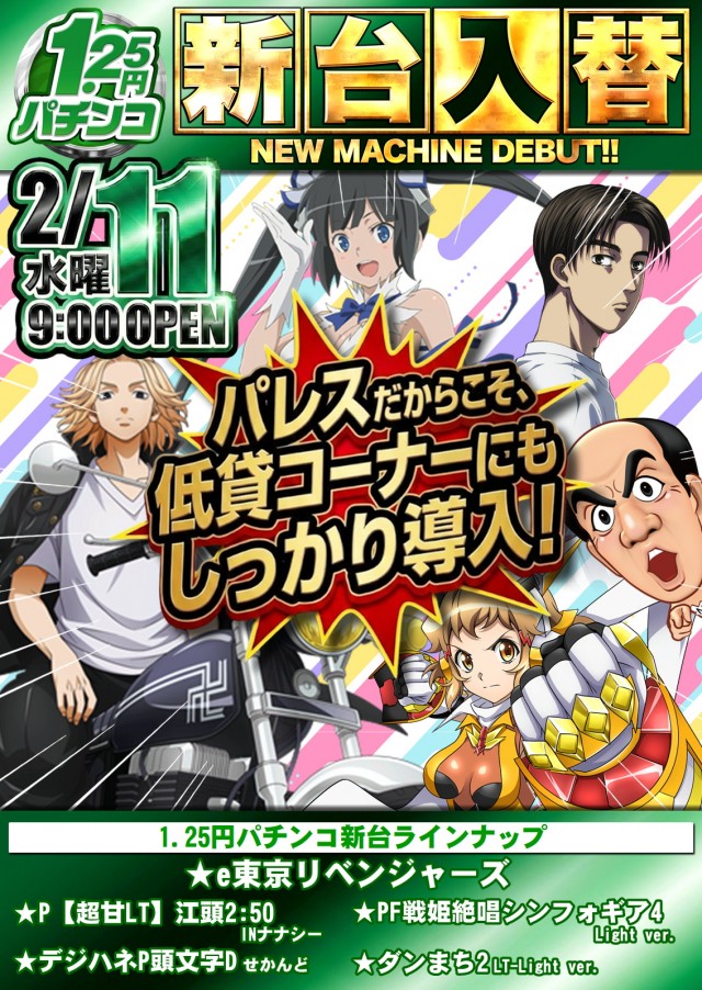明日1.25円パチンコに5機種新台導入&出張販売(予定)