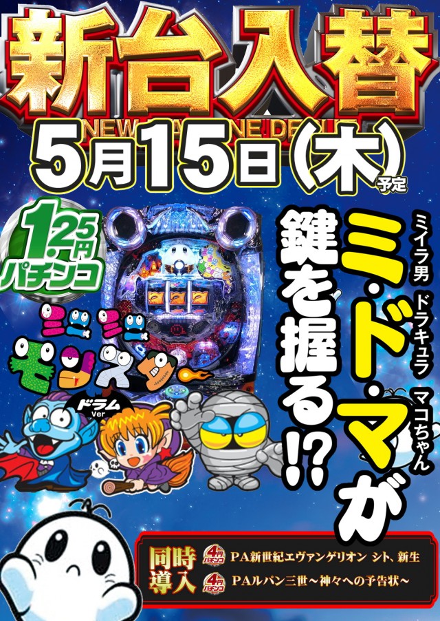 明日4円・1.25円に新台導入(予定)