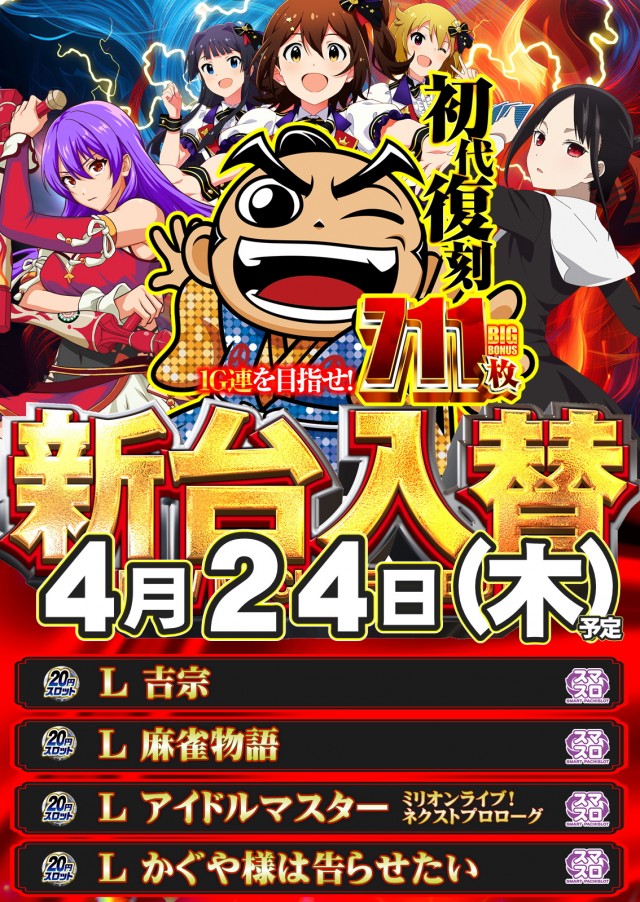 本日20円スマスロ・4円スマパチ新台導入(予定)