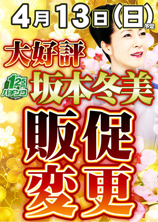 明日1.25円パチンコ坂本冬美販促変更(予定)